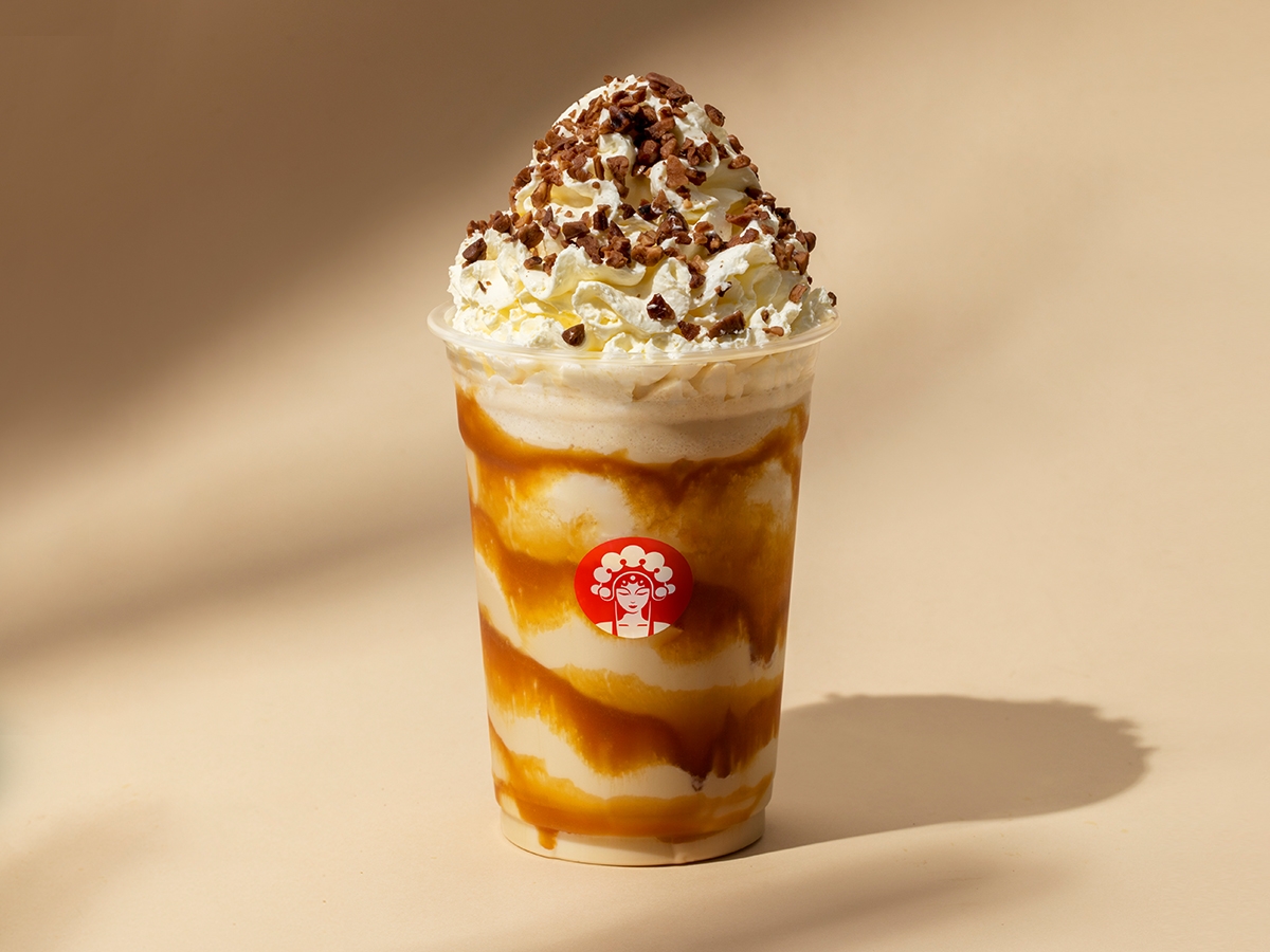 An indulgent and caramel-forward treat that still lets the beautiful tea flavors shine through. Ice blended, and topped with whipped cream.
